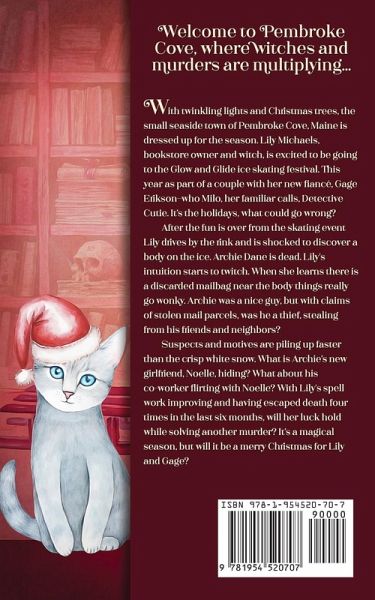 Welcome to Pembroke Cove, where witches and murders are multiplying... With twinkling lights and Christmas trees, the small seaside town of Pembroke Cove, Maine is dressed up for the season. Lily Michaels, bookstore owner and witch, is excited to be going to the Glow and Glide ice skating festival. This year as part of a couple with her new fiancé, Gage Erikson-who Milo, her familiar calls, Detective Cutie. It's the holidays, what could go wrong? After the fun is over from the skating event Lily drives by the rink and is shocked to discover a body on the ice. Archie Dane is dead. Lily's intuition starts to twitch. When she learns there is a discarded mailbag near the body things really go wonky. Archie was a nice guy, but with claims of stolen mail parcels, was he a thief, stealing from his friends and neighbors? Suspects and motives are piling up faster than the crisp white snow. What is Archie's new girlfriend, Noelle, hiding? What about his co-worker flirting with Noelle? With Lily's spell work improving and having escaped death four times in the last six months, will her luck hold while solving another murder? It's a magical season, but will it be a me