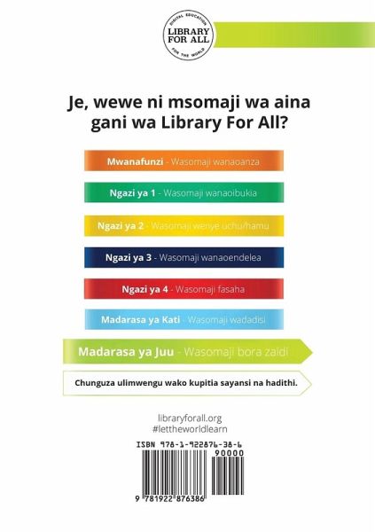 Adongo and Apiyo live in the city, but on holidays they get to visit their grandmother who lives in a fishing village near a large lake. Adongo na Apiyo wanaishi mjini, lakini wakati wa likizo wanamtembelea nyanya yao anayeishi katika kijiji cha wavuvi karibu na ziwa kubwa. Your purchase of this book supports Library For All in its mission to make knowledge available to all, equally.