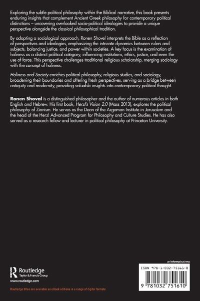 By adopting a sociological approach, Ronen Shovel interprets the Bible as a reflection of perspectives and ideologies, emphasizing the intricate dynamics between rulers and subjects, balancing justice, and power within societies. A key focus is the examination of holiness as a distinct political category, influencing institutions, ethics, justice, and even the use of force. This perspective challenges traditional religious scholarship, merging sociology with the concept of holiness.