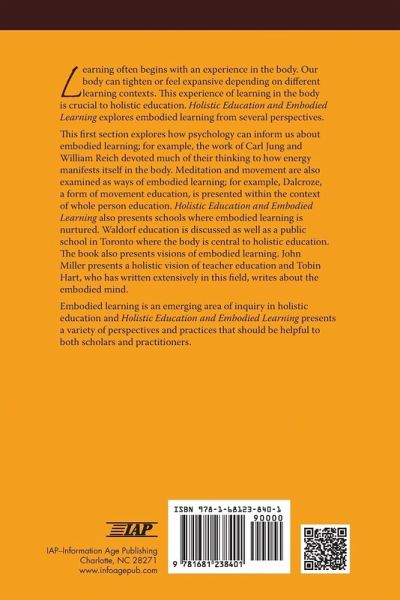 Learning often begins with an experience in the body. Our body can tighten or feel expansive depending on different learning contexts. This experience of learning in the body is crucial to holistic education. This book explores embodied learning from several perspectives. This first section explores how psychology can inform us about embodied learning; for example, the work of Carl Jung and Wilhelm Reich devoted much of their thinking to how energy manifests itself in the body. Meditation and movement are also examined as ways of embodied learning; for example, Dalcroze, a form of movement education, is presented within the context of whole person education. The book also presents schools where embodied learning is nurtured. Waldorf education is discussed as well as a public school in Toronto where the body is central to holistic education. The book also presents visions of embodied learning. John Miller presents a holistic vision of teacher education and Tobin Hart, who has written extensively in this field, writes about the embodied mind. Embodied learning is an emerging area of inquiry in holistic education and this book presents a variety of perspectives and practices that should be helpful to both scholars and practitioners.