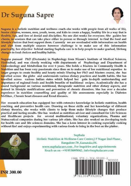 Food is the very basic of three key essentials of human survival air, water and food. We come across several kinds of foods which we label it into three- four courses of meal each day. For many of us it does not really matter how much effort is put in by someone in preparing that food and how it nourishes and replenishes our body. In this book you shall come across several small stories, real life incidents related to food and its importance in many forms of our living and current research trends in nutritional sciences, importance of traditional Indian recipes and food market dynamics which are changing in the flat world.My endeavor in writing this book is to help the Readers make conscious food choices that will keep you healthy and happy! This book is not for only women who cook for their families but for men and women from all age groups who would like to stay in a healthy body and a happy mind! Wishing all the readers Pink of your health!