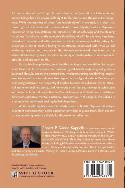 As the founders of the US republic make clear in the Declaration of Independence, human beings have an unassailable right to life, liberty, and the pursuit of happiness. While the meaning of these ""unalienable rights"" is debated, it is clear that these rights are interrelated. Concerned with these ""rights,"" Holistic Happiness focuses on happiness, defining the purpose of life as achieving and maintaining happiness ""conducive to the equitable flourishing of all."" To this end, happiness should not be confused with pleasure, which is momentary and transitory, for happiness is not so much a feeling as an attitude, associated with what we call achieving meaning and purpose in life. Properly understood, happiness can be achieved, but only by inner discipline, requiring a transformation of one's outlook, attitude, and approach to life. As this book emphasizes, good health is an important foundation for happiness. However, to experience and maintain good health requires good genes, a balanced lifestyle, supportive companions, wholesome eating and drinking, regular exercise, a positive mindset, an active disposition, and good fortune. While happiness and good health are frequently disrupted by accidents, disease, stress, chemical and emotional imbalance, and numerous other factors, wellness is achievable and sustainable, but it needs balanced input from an individual's four constituent dimensions: physical, mental, emotional, and spiritual. In this regard, this volume is a resource for individuals seeking holistic happiness. While benefitting from recent scholarly research, Holistic Happiness is unique in content and conception and is useful for individual or group study. Each chapter concludes with questions suitable for discussion or reflection.