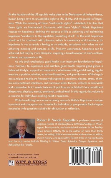 As the founders of the US republic make clear in the Declaration of Independence, human beings have an unassailable right to life, liberty, and the pursuit of happiness. While the meaning of these ""unalienable rights"" is debated, it is clear that these rights are interrelated. Concerned with these ""rights,"" Holistic Happiness focuses on happiness, defining the purpose of life as achieving and maintaining happiness ""conducive to the equitable flourishing of all."" To this end, happiness should not be confused with pleasure, which is momentary and transitory, for happiness is not so much a feeling as an attitude, associated with what we call achieving meaning and purpose in life. Properly understood, happiness can be achieved, but only by inner discipline, requiring a transformation of one's outlook, attitude, and approach to life. As this book emphasizes, good health is an important foundation for happiness. However, to experience and maintain good health requires good genes, a balanced lifestyle, supportive companions, wholesome eating and drinking, regular exercise, a positive mindset, an active disposition, and good fortune. While happiness and good health are frequently disrupted by accidents, disease, stress, chemical and emotional imbalance, and numerous other factors, wellness is achievable and sustainable, but it needs balanced input from an individual's four constituent dimensions: physical, mental, emotional, and spiritual. In this regard, this volume is a resource for individuals seeking holistic happiness. While benefitting from recent scholarly research, Holistic Happiness is unique in content and conception and is useful for individual or group study. Each chapter concludes with questions suitable for discussion or reflection.