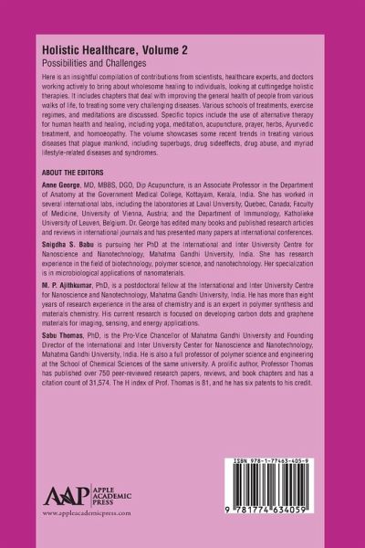 Here is an insightful compilation of contributions from scientists, healthcare experts, and doctors working actively to bring about wholesome healing to individuals, looking at cuttingedge holistic therapies. It includes chapters that deal with improving the general health of people from various walks of life, to treating some very challenging diseases. Various schools of treatments, exercise regimes, and meditations are discussed. Specific topics include the use of alternative therapy for human health and healing, including yoga, meditation, acupuncture, prayer, herbs, Ayurvedic treatment, and homoeopathy. The volume showcases some recent trends in treating various diseases that plague mankind, including superbugs, drug sideeffects, drug abuse, and myriad lifestyle-related diseases and syndromes.