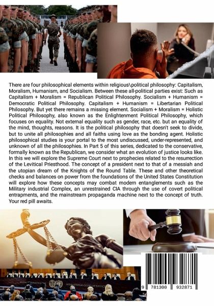 There are four philosophical elements within religious\political philosophy: Capitalism, Moralism, Humanism, and Socialism. Between these all-political parties exist: Such as Capitalism + Moralism = Republican Political Philosophy. Socialism + Humanism = Democratic Political Philosophy. Capitalism + Humanism = Libertarian Political Philosophy. But yet there remains a missing element. Socialism + Moralism = Holistic Political Philosophy, also known as the Enlightenment Political Philosophy, which focuses on equality. Not external equality such as gender, race, etc. but an equality of the mind, thoughts, reasons. It is the political philosophy that doesn't seek to divide, but to unite all philosophies and all faiths using love as the bonding agent. Holistic philosophical studies is your portal to the most undiscussed, under-represented, and unknown of all the philosophies. In Part 5 of this series, dedicated to the conservative, formally known as the Republican, we consider what an evolution of justice looks like. In this we will explore the Supreme Court next to prophecies related to the resurrection of the Levitical Priesthood. The concept of a president next to that of a messiah and the utopian dream of the Knights of the Round Table. These and other theoretical checks and balances on power from the foundations of the United States Constitution will explore how these concepts may combat modern entanglements such as the Military industrial Complex, an unrestrained CIA through the use of covert political entrapments, and the mainstream propaganda machine next to the concept of truth. Your red pill awaits.