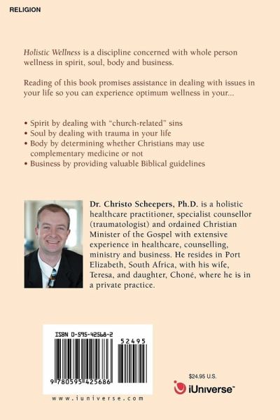Holistic Wellness is a discipline concerned with whole person wellness in spirit, soul, body and business. Reading of this book promises assistance in dealing with issues in your life so you can experience optimum wellness in your... * Spirit by dealing with "church-related" sins * Soul by dealing with trauma in your life * Body by determining whether Christians may use complementary medicine or not * Business by providing valuable Biblical guidelines