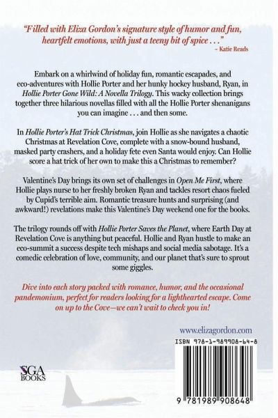 Embark on a whirlwind of holiday fun, romantic escapades, and eco-adventures with Hollie Porter and her hunky hockey husband, Ryan, in Hollie Porter Gone Wild: A Novella Trilogy. This wacky collection brings together three hilarious novellas filled with all the Hollie Porter shenanigans you can imagine ... and then some. In Hollie Porter's Hat Trick Christmas, join Hollie as she navigates a chaotic Christmas at Revelation Cove, complete with a snow-bound husband, masked party crashers, and a holiday fete even Santa would enjoy. Can Hollie score a hat trick of her own to make this a Christmas to remember? Valentine's Day brings its own set of challenges in Open Me First, where Hollie plays nurse to her freshly broken Ryan and tackles resort chaos fueled by Cupid's terrible aim. Romantic treasure hunts and surprising (and awkward!) revelations make this Valentine's Day weekend one for the books. The trilogy rounds off with Hollie Porter Saves the Planet, where Earth Day at Revelation Cove is anything but peaceful. Hollie and Ryan hustle to make an eco-summit a success despite tech mishaps and social media sabotage. It's a comedic celebration of love, community, and our planet that's sure to sprout some giggles. Dive into each story packed with romance, humor, and the occasional pandemonium, perfect for readers looking for a lighthearted escape. Come on up to the Cove-we can't wait to check you in!