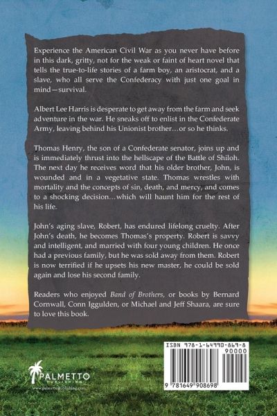 Experience the American Civil War as you never have before in this dark, gritty, not for the weak or faint of heart novel that tells the true-to-life stories of a farm boy, an aristocrat, and a slave, who all serve the Confederacy with just one goal in mind-survival. Albert Lee Harris is desperate to get away from the farm and seek adventure in the war. He sneaks off to enlist in the Confederate Army, leaving behind his Unionist brother...or so he thinks. Thomas Henry, the son of a Confederate senator, joins up and is immediately thrust into the hellscape of the Battle of Shiloh. The next day he receives word that his older brother, John, is wounded and in a vegetative state. Thomas wrestles with mortality and the concepts of sin, death, and mercy, and comes to a shocking decision...which will haunt him for the rest of his life. John's aging slave, Robert, has endured lifelong cruelty. After John's death, he becomes Thomas's property. Robert is savvy and intelligent, and married with four young children. He once had a previous family, but he was sold away from them. Robert is now terrified if he upsets his new master, he could be sold again and lose his second family. Readers who enjoyed Band of Brothers, or books by Bernard Cornwall, Conn Iggulden, or Michael and Jeff Shaara, are sure to love this book.