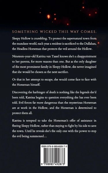 Nothing is ever as it seems in Sleepy Hollow... Sleepy Hollow is crumbling. To protect the supernatural town from the mundane world, each year a resident is sacrificed to The Dullahan, the Headless Horseman that protects the veil around the Hollow. Nineteen-year-old Katrina van Tassel knows she's a disappointment to her parents, for more reasons than one. But as the only daughter of the most prominent family in Sleepy Hollow, she never imagined that she would be chosen as the next sacrifice. Or that in her attempt to escape, she would instead come face to face with the Horseman himself. But the harbinger of death isn't who they said he was, and Katrina begins to question everything she has ever been told. Evil forces far more dangerous than the mysterious Horseman are at work in the Hollow, and the Horseman is determined to protect Sleepy Hollow. Katrina is tempted to take the Horseman's offer of assistance in fleeing Sleepy Hollow, rather than staying to fight by his side to save the town. Until he reveals she's the only one with the power to stop the evil being summoned... A standalone gothic fantasy, Hollowed will pull you into the reimagined world of Sleepy Hollow and thrust you into a mysterious town filled with deadly magic, cunning betrayals, and secrets you never saw coming. Cross the bridge into the Hollow and pick up your next dark fantasy read.
