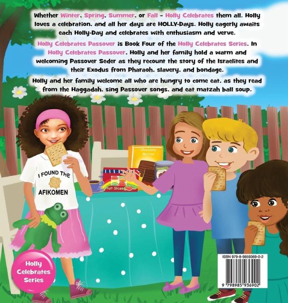 Whether Winter, Spring, Summer, or Fall - Holly Celebrates them all. Holly loves a celebration, and all her days are HOLLY-Days. Holly eagerly awaits each Holly-Day and celebrates with enthusiasm and verve. Holly Celebrates Passover is Book Four of the Holly Celebrates Series. In Holly Celebrates Passover, Holly and her family hold a warm and welcoming Passover Seder as they recount the story of the Israelites and their Exodus from Pharaoh, slavery, and bondage. Holly and her family welcome all who are hungry to come eat, as they read from the Haggadah, sing Passover songs, and eat matzah ball soup.