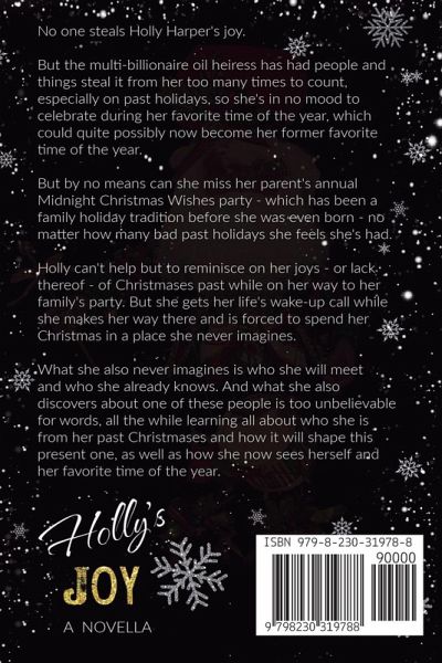 No one steals Holly Harper's joy. But the multi-billionaire oil heiress has had people and things steal it from her too many times to count, especially on past holidays, so she's in no mood to celebrate during her favorite time of the year, which could quite possibly now become her former favorite time of the year. But by no means can she miss her parent's annual Midnight Christmas Wishes party-which has been a family holiday tradition before she was even born-no matter how many bad past holidays she feels she's had. Holly can't help but to reminisce on her joys-or lack thereof-of Christmases past while on her way to her family's party. But she gets her life's wake-up call she while she makes her way there and is forced to spend her Christmas in a place she never imagines. What she also never imagines is who she will meet . . . and who she already knows. And what she also discovers about one of these people is too unbelievable for words, all the while learning about who she is from her past Christmases and how it will shape this present one, as well as how she now sees herself and her favorite time of the year.