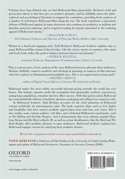 Hollywood makes the most widely successful pleasure-giving artworks the world has ever known. The industry operates under the assumption that pleasurable aesthetic experiences, among huge populations, translate into box office success. With that goal in mind, Hollywood has systematized the delivery of aesthetic pleasure, packaging and selling it on a massive scale. In Hollywood Aesthetic, Todd Berliner accounts for the chief attraction of Hollywood cinema worldwide: its entertainment value. The book examines films such as City Lights and Goodfellas that have earned aesthetic appreciation from both fans and critics. But it also studies some curious outliers, cult films, and celebrated Hollywood experiments, such as The Killing and Starship Troopers. And it demonstrates that even ordinary popular films, from Tarzan and His Mate to Rocky III, as well as action blockbusters, like Die Hard and The Dark Knight, offer aesthetic pleasure to mass audiences. Hollywood Aesthetic explains how Hollywood engages viewers by satisfying their aesthetic desires. Visit the companion website at www.oup.com/us/hollywoodaesthetic