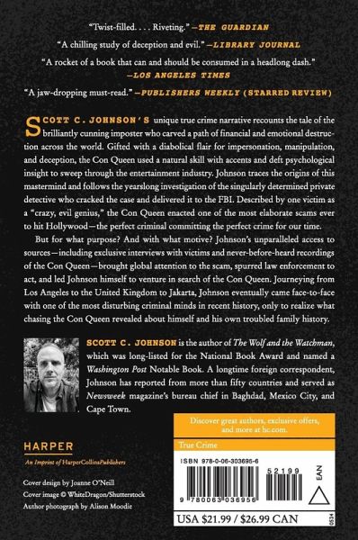 Blending years of deep reporting with distinctive, powerful prose, Scott C. Johnson's unique true crime narrative recounts the tale of the brilliantly cunning imposter who carved a path of financial and emotional destruction across the world. Gifted with a diabolical flair for impersonation, manipulation, and deception, the Con Queen used their skill with accents and deft psychological insight to sweep through the entertainment industry. Johnson traces the origins of this mastermind and follows the years-long investigation of a singularly determined private detective who helped deliver them to the FBI. Described by one victim as a "crazy, evil genius," the Con Queen enacted one of the most elaborate scams ever to hit Hollywood-the perfect criminal, committing the perfect crime for our time.