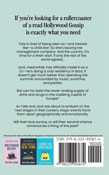 From Kristina Adams, author of the bestselling What Happens in... series comes the first book in the prequel companion series Hollywood Gossip. Jump back in time to when Tate and Jack were in their late teens, trying to transition from child stars to megastars. Follow them on their journey as they become friends, enemies, and lovers alongside familiar faces from the What Happens in Hollywood Universe and new ones you're going to love. Tate I'm tired of being seen as-and treated like-a child star. So I'm leaving my management company. And the country. It's time for a fresh start. If only the rest of the world agreed... Jack I've officially made it as a DJ! I'm doing a residency in Ibiza, the home of dance music! Can it get much better than a summer of music, sunshine, and parties? But how can I resist the nerve-ending supply of drink and drugs in the clubbing capital of Europe? Hollywood Drama is part three of the Hollywood Gossip series by Kristina Adams. If you're looking for a serial will they/won't they romantic drama about love, hate, and the pressures of fame, you won't find one that's more of a rollercoaster read than this. There's no guarantee of a happy ending for Tate and Jack at the end of each book, but there is at the end of the series.