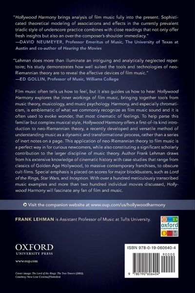 Film music often tells us how to feel, but it also guides us how to hear. Filmgoing is an intensely musical experience, one in which the soundtrack structures our interpretations and steers our emotions. Hollywood Harmony explores the inner workings of film music, bringing together tools from music theory, musicology, and music psychology in this first ever book-length analytical study of this culturally central repertoire. Harmony, and especially chromaticism, is emblematic of the "film music sound," and it is often used to evoke that most cinematic of feelings-wonder. To help parse this familiar but complex musical style, Hollywood Harmony offers a first-of-its kind introduction to neo-Riemannian theory, a recently developed and versatile method of understanding music as a dynamic and transformational process, rather than a series of inert notes on a page. This application of neo-Riemannian theory to film music is perfect way in for curious newcomers, while also constituting significant scholarly contribution to the larger discipline of music theory. Author Frank Lehman draws from his extensive knowledge of cinematic history with case-studies that range from classics of Golden Age Hollywood to massive contemporary franchises to obscure cult-films. Special emphasis is placed on scores for major blockbusters such as Lord of the Rings, Star Wars, and Inception. With over a hundred meticulously transcribed music examples and more than two hundred individual movies discussed, Hollywood Harmony will fascinate any fan of film and music.