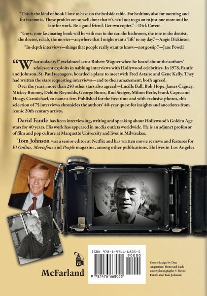 "What audacity!" exclaimed actor Robert Wagner when he heard about the authors' adolescent exploits in nabbing interviews with Hollywood celebrities. In 1978, Fantle and Johnson, St. Paul teenagers, boarded a plane to meet with Fred Astaire and Gene Kelly. They had written the stars requesting interviews--and to their amazement, both agreed. Over the years, more than 250 other stars also agreed--Lucille Ball, Bob Hope, James Cagney, Mickey Rooney, Debbie Reynolds, George Burns, Rod Steiger, Milton Berle, Frank Capra and Hoagy Carmichael, to name a few. Published for the first time and with exclusive photos, this selection of 75 interviews chronicles the authors' 40-year quest for insights and anecdotes from iconic 20th century artists.