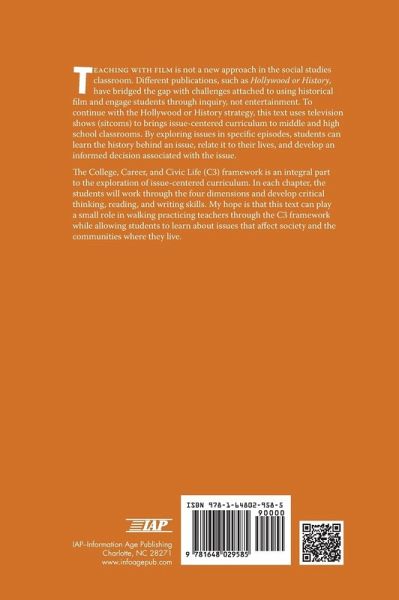 Teaching with film is not a new approach in the social studies classroom. Different publications, such as Hollywood or History, have bridged the gap with challenges attached to using historical film and engage students through inquiry, not entertainment. To continue with the Hollywood or History strategy, this text uses television shows (sitcoms) to brings issue-centered curriculum to middle and high school classrooms. By exploring issues in specific episodes, students can learn the history behind an issue, relate it to their lives, and develop an informed decision associated with the issue. The College, Career, and Civic Life (C3) framework is an integral part to the exploration of issue-centered curriculum. In each chapter, the students will work through the four dimensions and develop critical thinking, reading, and writing skills. My hope is that this text can play a small role in walking practicing teachers through the C3 framework while allowing students to learn about issues that affect society and the communities where they live.