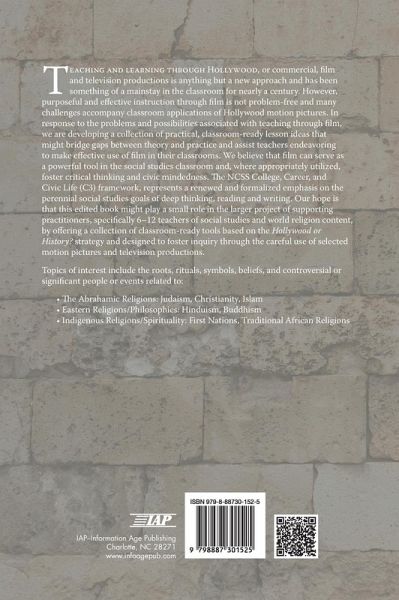 Teaching and learning through Hollywood, or commercial, film and television productions is anything but a new approach and has been something of a mainstay in the classroom for nearly a century. However, purposeful and effective instruction through film is not problem-free and many challenges accompany classroom applications of Hollywood motion pictures. In response to the problems and possibilities associated with teaching through film, we are developing a collection of practical, classroom-ready lesson ideas that might bridge gaps between theory and practice and assist teachers endeavoring to make effective use of film in their classrooms. We believe that film can serve as a powerful tool in the social studies classroom and, where appropriately utilized, foster critical thinking and civic mindedness. The NCSS College, Career, and Civic Life (C3) framework, represents a renewed and formalized emphasis on the perennial social studies goals of deep thinking, reading and writing. Our hope is that this edited book might play a small role in the larger project of supporting practitioners, specifically 6-12 teachers of social studies and world religion content, by offering a collection of classroom-ready tools based on the Hollywood or History? strategy and designed to foster inquiry through the careful use of selected motion pictures and television productions.Topics of interest include the roots, rituals, symbols, beliefs, and controversial or significant people or events related to:The Abrahamic Religions: Judaism, Christianity, Islam Eastern Religions/Philosophies: Hinduism, Buddhism Indigenous Religions/Spirituality: First Nations, Traditional African Religions