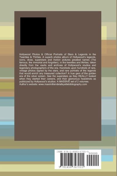 Hollywood Photos & Official Portraits of Stars & Legends in the Twenties & Thirties. A superb photos album of Hollywood's legends, icons, divas, superstars and motion pictures greatest names (The famous, the immortal and forgotten), in the twenties and thirties, taken directly from the vaults and archives of Hollywood's studios and legendary photographers of the era. Hundreds upon hundreds of rare, vintage photos signed by the stars, and rare portraits of the legends that would enrich any treasured collection!! A true gem of the golden era of the silver screen. See the superstars as they REALLY looked when they started their careers, and their glamorous headshots as publicized by Hollywood's studios. A MASSIVE set of 2 volumes. Author's website: www.maximilliendelafayettebibliography.com