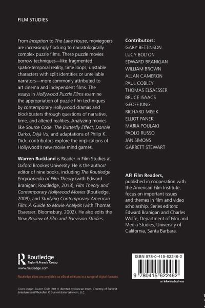 Introduction: Ambiguity, ontological pluralism, and cognitive dissonance in the Hollywood puzzle film Warren Buckland Part I: Narratology and systems theory 1. Complex narratives - Jan Simons 2. Puzzled Hollywood and the return of complex films - Maria Poulaki Part II: Inception, the archetypal Hollywood puzzle film 3. Unravelling the puzzle of Inception- Geoff King 4. 'Show, don't tell': Considering the utility of diagrams as a tool for understanding complex narratives - Elliot Panek 5. 'Pain is in the mind': Dream narrative in Inception and Shutter Island - Paolo Russo 6. Modular spacetime in the 'intelligent' blockbuster: Inception and Source Code-Allan Cameron and Richard Misek 7. Complexity and simplicity in Inception and Five Dedicated to Ozu - William Brown Part III: The science fiction Hollywood puzzle film8. Philip K. Dick, the mind-game film, and retroactive causality - Thomas Elsaesser 9. Fourth dimensions, seventh senses: The work of mind-gaming in the age of electronic reproduction - Garrett Stewart 10. Source Code's video game logic - Warren Buckland 11. The image of time in post-classical Hollywood: Donnie Darko and Southland Tales - Bruce Isaacs Part IV: The drama Hollywood puzzle film12. Re-viewing Vantage Point - Paul Cobley 13. The Butterfly Effect upon its Spectator - Edward Branigan 14. Solving suicide: Facing the complexity of The Hours - Lucy Bolton 15. Knowledge and narrativity in Premonition and The Lake House - Gary Bettinson