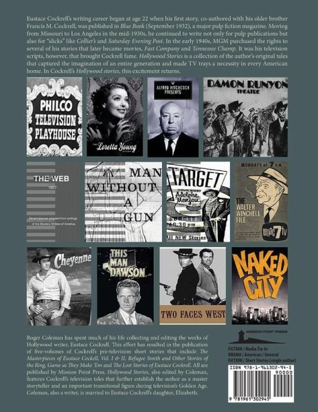 Eustace Cockrell's writing career began at age twenty-two when his first story, co-authored with his older brother Francis M. Cockrell, was published in Blue Book (September 1932), a major pulp fiction magazine. Moving from Missouri to Los Angeles in the mid-1930s, he continued to write not only for pulp publications but also for "slicks" like Collier's and Saturday Evening Post. In the early 1940s, MGM (Metro-Goldwyn-Mayer) purchased the rights to several of his stories that later became movies including Fast Company and Tennessee Champ. It was his television scripts, however, that brought Cockrell fame. Hollywood Stories is a collection of the author's original tales that captured the imagination of an entire generation and made TV trays a necessity in every American home. In Cockrell's "Hollywood stories," this excitement returns.