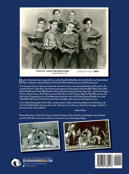 Best Photo Layout of 2014 "Full of terrific, nicely arranged photos and a bigger book size than typical BearManor volumes." - Classic Images A Pictorial History of: The Dead End Kids Little Tough Guys East Side Kids and The Bowery Boys Back in 1964 when I was 12 years old I saw my first Dead End Kids film; the title of the film was Crime School. After watching it I learned all about the Dead End Kids and their lives on and off the big screen. Over the past 40 years, I became friends with many of the actors who portrayed the kids, and the actors who worked with them in their films. I have had the great pleasure of becoming friends with Billy Halop, Huntz Hall, Gabe Dell, Bernard Punsly, Billy Benedict, Bennie Bartlett, Stanley Clements, Pepe Hern, Joe Turkel, Eugene Francis, Johnny Duncan, David Gorcey, Jimmy McCallon, Frankie Thomas, Eddie Le Roy, Bill Lawrence and Keye Luke. My greatest joy is my friendship over the past 30 years with Mendie Koenig (Mendie was a dear "Dead End Kids" friend-I think of him often) Dick Chandlee, Johnny Duncan and Eugene Francis. I have collected thousands of 8x10 stills, countless posters, lobby cards and anything I can find that has to do with the Dead End Kids. I hope you the reader will enjoy your travels as you thumb thru the pages and look at the pictures that I have collected. – Richard Roat
