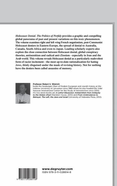 Holocaust Denial. The Politics of Perfidy provides a graphic and compelling global panorama of past and present variations on this toxic phenomenon. The volume examines right and left wing French negationism, post-Communist Holocaust deniers in Eastern-Europe, the spread of denial to Australia, Canada, South-Africa and even to Japan. Leading scholarly experts also explore the close connection between Holocaust denial, global conspiracy theories, antisemitism and radical anti-Zionism - especially in Iran and the Arab world.
