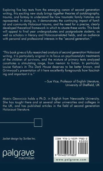 "This book gives a fully researched analysis of second-generation Holocaust writing. It is particularly original in its focus on psychoanalytic treatments of the children of survivors, and the mixture of primary texts analyzed constitutes a stimulating range, from memoir to fiction. In particular, Louise Kehoe's In This Dark House deserves to be better known, and Grimwood's presentation of it here excellently foregrounds how fascinating and important it is." - Sue Vice, Professor of English Literature, University of Sheffield, UK