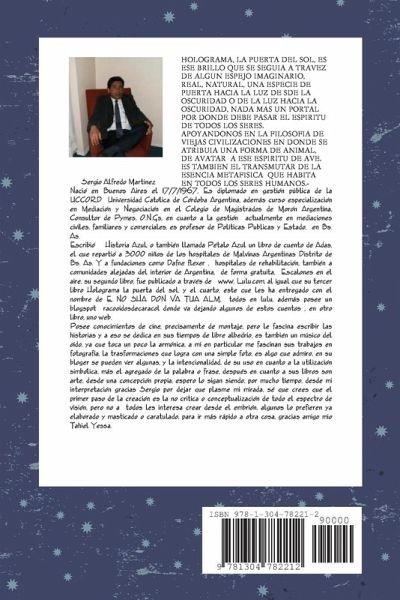 LA OBRA ES UNA SELECCION DE CUENTOS EN DONDE "HOLOGRAMA, LA PUERTA DEL SOL" ES UNO DE ELLOS Y POR LO CUAL SE ELIGIO TITULAR A LA MISMA CON ESTE NOMBRE, EL CUAL MUESTRA A TRAVEZ DEL RELATO EL VUELO DEL ESPIRITU Y NACIMIENTO DE LOS HIJOS QUE A VECES UN MUNDO ESPERA EN OTRO CONTEXTO.-