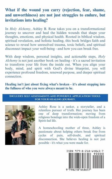 What if the wound you carry - rejection, fear, shame, and unworthiness - are not just struggles to endure, but invitations into healing? In Holy Alchemy, Ashley B. Rose takes you on a transformational journey to uncover and heal the hidden wounds that shape your thoughts, emotions, and physical health. Rooted in biblical wisdom, spiritual revelation, and holistic healing, this book bridges faith and science to reveal how unresolved trauma, toxic beliefs, and spiritual disconnect impact your well-being - and how you can break free. With deep wisdom, personal insights, and actionable steps, Holy Alchemy is not just another book on healing - it's a sacred invitation to transform your life from the inside out. When you align your body, mind, and spirit with God's divine blueprint, you will experience profound freedom, renewed purpose, and deeper spiritual connection. Healing isn't just about fixing what's broken - it's about stepping into the fullness of who you were always meant to be, It's time to reclaim your body, renew your mind, and restore your spirit.