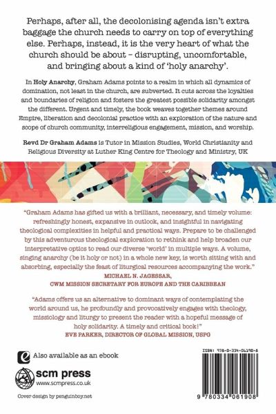 Perhaps, after all, the decolonising agenda isn't extra baggage the church needs to carry on top of everything else. Perhaps, instead, it is the very heart of what the church should be about - disrupting, uncomfortable, and bringing about a kind of 'holy anarchy'. In Holy Anarchy, Graham Adams points to a realm in which all dynamics of domination, not least in the church, are subverted. It cuts across the loyalties and boundaries of religion and fosters the greatest possible solidarity amongst the different. Urgent and timely, the book weaves together themes around Empire, liberation and decolonial practice with an exploration of the nature and scope of church community, interreligious engagement, mission, and worship.