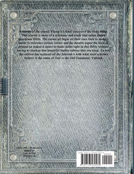 A reprint of the classic Young's Literal version of the Holy Bible. This reprint is more of a reference and study tool rather than a devotional Bible. The verses all begin on their own lines to make it easier to reference certain verses and the durable paper the book is printed on makes it easier to make notes right in this Bible without having to markup that beautiful leather edition that you keep. As well the edition has replaced all the Jehovah's with what most scholars believe is the name of God in the Old Testament, Yahweh.