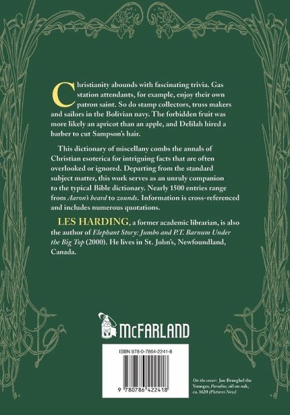 Christianity abounds with fascinating, little-known trivia. Gas station attendants, for example, enjoy their own patron saint. So do stamp collectors, truss makers and sailors in the Bolivian navy. Jesus and Judas were common names in the biblical period, and Jesus of Nazareth had a brother named Judas. The forbidden fruit was more likely an apricot than an apple, and Delilah hired a barber to cut Sampson's hair. This dictionary of miscellany combs the annals of Christian esoterica, offering the most intriguing facts that are often forgotten, overlooked or ignored. Departing from the standard subject matter, this work serves as an unruly companion to the typical Bible dictionary. Nearly 1500 entries range from Aaron's beard (a popular name for Saint John's wort) to zounds (an antiquated Christian swear word). Information is cross-referenced and includes numerous quotations.