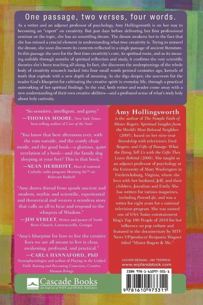 One passage, two verses, four words. As a writer and an adjunct professor of psychology, Amy Hollingsworth is on her way to becoming an ""expert"" on creativity. But just days before delivering her first professional seminar on the topic, she has an unsettling dream. The dream awakens her to the fact that she has missed a crucial element in understanding what true creativity is. Trying to unravel the dream, she soon discovers its contents reflected in a single passage of ancient literature. In this passage she sees for the first time creativity's core, its spiritual roots, and as its meaning unfolds through months of spiritual reflection and study, it confirms the very scientific theories she's been teaching all along. In fact, she discovers the underpinnings of the whole body of creativity research tucked into four small words penned centuries ago, kernels of truth that explode with a new depth of meaning. As she digs deeper, she uncovers for the reader God's blueprint for cultivating the creative spirit in everyday life, through a practical outworking of her spiritual findings. In the end, both writer and reader come away with a new understanding of their own creative abilities--and a profound sense of what's truly holy about holy curiosity.