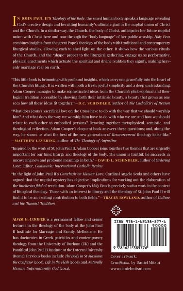 In John Paul II's Theology of the Body, the sexed human body speaks a language revealing God's creative design and heralding humanity's ultimate goal in the nuptial union of Christ and the Church. In a similar way, the Church, the body of Christ, anticipates her future nuptial union with Christ here and now through the "body language" of her public worship. Holy Eros combines insights from the great Pope's theology of the body with traditional and contemporary liturgical studies, allowing each to shed light on the other. It shows how the various rituals of the Church, and the "shape" proper to the liturgical gathering, engage us as performative, physical enactments which actuate the spiritual and divine realities they signify, making heavenly marriage real on earth. "Inspired by the work of St. John Paul II, Adam Cooper succeeds in uncovering new and profound meanings in both liturgy and theology of the body." -- David L. Schindler, author of Ordering Love "Drawing together metaphysical, semiotic, and theological reflection, Adam Cooper's eloquent book shows us what the best of the new generation of Ressourcement theology looks like." -- Matthew Levering, author of The Theology of Augustine "This little book is brimming with profound insights, which carry one gracefully into the heart of the Church's liturgy." -- D.C. Schindler, author of The Catholicity of Reason "Those with an interest in liturgy and the theology of St. John Paul II will find Holy Eros to be an exciting contribution to both fields." -- Tracey Rowland, author of Culture and the Thomist Tradition