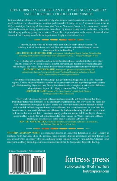 Pastors and Christian institutional leaders serve more creatively, effectively, and joyfully when they feel supported and part of an intimate community of colleagues and friends who care about their personal and professional wellbeing. So attests Victoria Atkinson White in Holy Friendships: Nurturing Relationships That Sustain Pastors and Leaders. And yet, she observes, many leaders sacrifice critical relationships, citing lack of time or competing priorities, and end up isolated, lonely, and burned out. Social media compounds this problem by distorting the meaning of "friend" and reducing it to a relationship in search of clicks, likes, and emoji-ed responses. While we might have lots of "friends," holy friendships are mutual and sacred relationships deeply rooted in God's love. What Christian leaders need is a circle of holy friends to walk alongside them in the challenging and constantly changing work of ministry. White gives readers permission to invest in their own resilience, sustainability, and flourishing by cultivating and nurturing their own holy friendships. By recounting the stories of meaningful holy friendships and revealing the benefits of challenging conversations over time, she offers hope, grace, and humor. She also provides examples of how holy friendships can change institutions and systems, helping pastoral leaders cultivate beloved community.