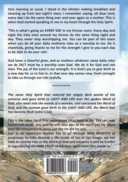 Holy Ghost-like mind is a Good Mother-like character is a 365 daily devotional book about mothers who are grateful of their role in raising their children everyday. Everyday they enter the throne of God with their home chores as a worship unto God in His throne room. ¿