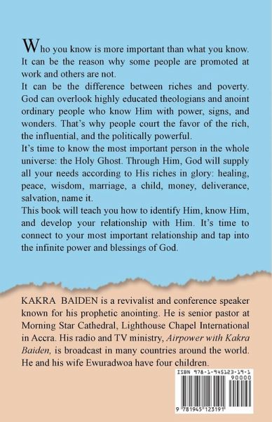 Who you know is more important than what you know. It can be the reason why some people are promoted at work and others are not. It can be the difference between riches and poverty. God can overlook highly educated theologians and anoint ordinary people who know Him with power, signs, and wonders. That’s why people court the favor of the rich, the influential, and the politically powerful. It’s time to know the most important person in the whole universe: the Holy Ghost. Through Him, God will supply all your needs according to His riches in glory: healing, peace, wisdom, marriage, a child,…mehr