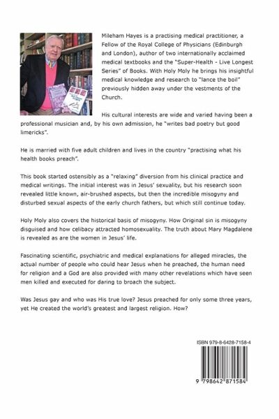 This book started ostensibly as a "relaxing" diversion from the Author's clinical practice and medical writings. The initial interest was in Jesus' sexuality, but his research soon revealed little known, air-brushed aspects, but then the incredible misogyny and disturbed sexual aspects of the early church fathers, but which still continue today.Holy Moly also covers the historical basis of misogyny. How Original sin is misogyny disguised and how celibacy attracted homosexuality. The truth about Mary Magdalene is revealed as are the women in Jesus' life. Fascinating scientific, psychiatric and medical explanations for alleged miracles, the actual number of people who could hear Jesus when he preached, the human need for religion and a God are also provided with many other revelations which have seen men killed and executed for daring to broach the subject.Was Jesus gay and who was His true love? Jesus preached for only some three years, yet He created the world's greatest and largest religion. How?