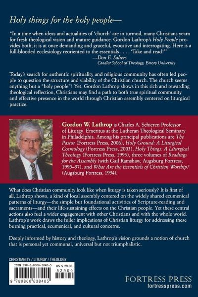 This sequel to Gordon Lathrop's highly successful Holy Things is an exercise in liturgical theology, viewing the activities of worship as a means of defining and discussing the concept ?church.? It centers on community and assembly to discuss the sacraments. It focuses on ecumenism and inculturation as central test cases for a liturgically derived idea of church. In hopes of invigorating the local church, Lathrop explores the meaning of the term ?church, ? the relationship of the local liturgical assembly and other Christian assemblies (catholicity); the personal and communal character of liturgical assembly; the unity of the churches; the critical principles of liturgy and culture; openness to what is radically other; and liturgical evangelization. Lathrop's work grounds a notion of church that is personal yet communal, universal, but not triumphalistic.