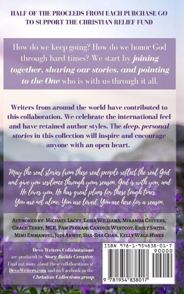 How do we keep going? How do we honor God through hard times? We start by joining together, sharing our stories, and pointing to the One who is with us through it all. Holy Resilience is another Christian Writers' Collection from over a dozen international best-selling authors. Read dozens of short daily devotions as well as some longer devotional stories. To get a quick read in the morning to start your day right, jump to the Daily Devotion section. When you have more time and want to see God's faithfulness show through someone's life story, read one of the Devotional Stories in the second half of the book. ¿This collection is formed with various authors around the world. The viewpoints of each author do not reflect those of everyone involved. We differ on some theological issues, but our goal is to come together despite those differences to share messages that challenge us to be faithful through troubled times. May the real stories from these real people reflect the real God and give you tools for to have holy resilience through every season. You are not alone ¿ You are loved ¿ You are here for a reason ¿ Let's find the way forward together Authors* include:Leisa Williams Miranda Chivers Grace Terry NCR Pam Pegram Candice Westcot Emily Smith Mimi Emmanuel Jodi Arndt Sha-Sha Chan Kelly Walk Hines Michael Lacey (with Story Builds Creative, also producer of these collaborations) *Christian writers are invited to join the next collaboration (details inside the book!). *Buy Now and get a copy to share with a friend!* Part of the proceeds go to benefit victims of the recent pandemic.