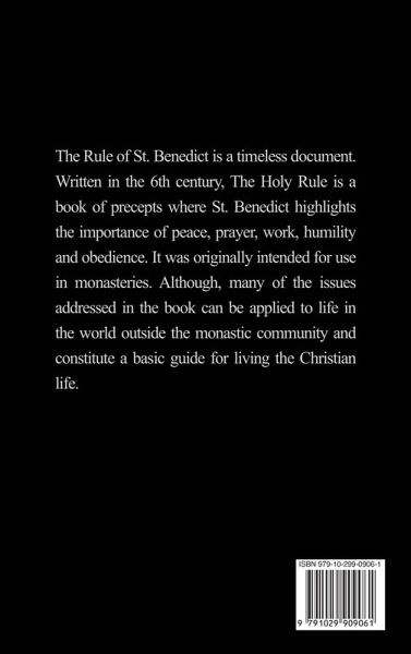 The Rule of St. Benedict is a timeless document. Written in the 6th century, The Holy Rule is a book of precepts where St. Benedict highlights the importance of peace, prayer, work, humility and obedience. It was originally intended for use in monasteries. Although, many of the issues addressed in the book can be applied to life in the world outside the monastic community and constitute a basic guide for living the Christian life.