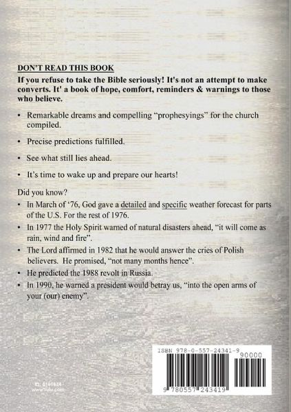 DID YOU KNOW? IN MARCH OF '76, GOD GAVE A DETAILED AND SPECIFIC WEATHER FORECAST FOR PARTS OF THE U.S. FOR THE REST OF '76. (Evidences & Witnesses to this prediction are in the book.) IN 1977 THE HOLY SPIRIT WARNED OF NATURAL DISASTERS AHEAD, "IT WILL COME AS RAIN, WIND AND FIRE." THE LORD AFFIRMED IN '82 HE WOULD ANSWER THE CRIES OF POLISH BELIEVERS. HE PROMISED, "NOT MANY MONTHS HENCE". HE PREDICTED THE 1988 REVOLT IN RUSSIA. IN 1990, HE WARNED A PRESIDENT WOULD BETRAY US "INTO THE OPEN ARMS OF YOUR ENEMY".