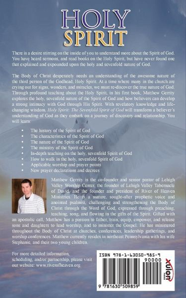 There is a desire stirring on the inside of you to understand more about the Spirit of God. You have heard sermons, and read books on the Holy Spirit, but have never found one that explained and expounded upon the holy and sevenfold nature of God. The Body of Christ desperately needs an understanding of the awesome nature of the third person of the Godhead, Holy Spirit. At a time where many in the church are crying out for signs, wonders, and miracles, we must re-discover the true nature of God. Through profound teaching about the Holy Spirit, in his first book, Matthew Gerrity explores the holy, sevenfold nature of the Spirit of God and how believers can develop a strong intimacy with God through His Spirit. With revelatory knowledge and life-changing wisdom, Holy Spirit: The Sevenfold Spirit of God will transform a believer's understanding of God as they embark on a journey of discovery and relationship. You will learn: The history of the Spirit of God The characteristics of the Spirit of God The nature of the Spirit of God The ministry of the Spirit of God In-depth teaching on the holy, sevenfold Spirit of God How to walk in the holy, sevenfold Spirit of God Applicable worship and prayer points New prayer declarations and decrees Matthew Gerrity is the co-founder and senior pastor of Lehigh Valley Worship Center, the founder of Lehigh Valley Tabernacle of David, and the founder and president of River of Heaven Ministries. He is a mature, sought-after prophetic voice and anointed psalmist, challenging and strengthening the Body of Christ through the Word of God, expressed through preaching, teaching, song, and flowing in the gifts of the Spirit. Gifted with an apostolic call, Matthew has a passion to father, train, equip, empower, and release sons and daughters to lead worship, and to minister the Gospel. He has ministered throughout the Body of Christ at churches, conferences, leadership gatherings, and worship conferences. Matthew currently resides in northeast Pennsylvania with his wife Stephanie, and their two young children. For more detailed information, scheduling, and/or partnership, please visit our website: www.riverofheaven.org