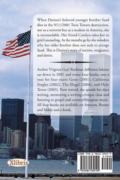 When Desirees beloved younger brother Saad dies in the 9/11/2001 Twin Towers destruction, not as a terrorist but as a student in America, she is inconsolable. Her friend Carolyn takes her to grief counseling. As the months go by she wonders why her older brother does not seek to avenge Saad. This is Desirees story of sorrow, vengeance and desire.