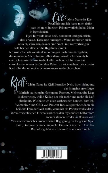 Eve: Mein Name ist Eve Reynolds und ich hasse mich dafür, dass ich mich in einen Priester verliebt habe. Nicht in irgendeinen. Kjell Burnside ist so heiß, dominant und gefährlich, dass er als 8. Todsünde durchgeht. Wann immer er mich ansieht, spüre ich, dass er eine Nacht mit mir verbringen will, bei der allein er die Regeln bestimmt. Ich wünschte, ich könnte dem Verlangen nach ihm nachgeben, das in meinen Adern brennt. Aber damit würde ich vermutlich ein Ticket erster Klasse in die Hölle buchen. Ich bin also fest entschlossen, seinen betörenden Reizen zu widerstehen. Leider setzt Kjell alles daran, meine Schutzmauern zu durchbrechen.Kjell: Mein Name ist Kjell Burnside. Nein, ist er nicht, und das ist meine erste Lüge. In Wahrheit lautet mein Nachname Prescott. Meine zweite Lüge ist dieser enge, weiße Kollar, der mir mehr und mehr die Luft abschnürt. Wie hätte ich auch vorhersehen können, dass ich, Womanizer und CEO von Prescott Inc., ausgerechnet dann die heißeste Frau der Welt treffe, wenn ich als Priester verkleidet in ihrem verschlafenen Heimatstädtchen den mysteriösen Selbstmord meines kleinen Bruders aufklären will? Wer auch immer bei unserer ersten Begegnung die Finger im Spiel hatte, Gott war es eindeutig nicht. Eins steht trotzdem fest: Eve Reynolds gehört mir. Sie weiß es nur noch nicht.