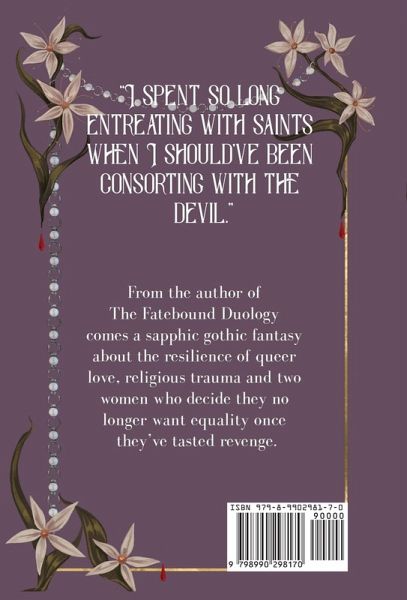 A gothic, sapphic fantasy about two women who decide they no longer want equality once they've tasted revenge. In a city clinging to light during an age of darkness, all healer Ophelia wants is for a Saint to finally claim her and bless her with the power to work the Mysteries. When she's tasked with caring for an injured prisoner, Ophelia sees the perfect opportunity to prove she's ready for her Sainting. The prisoner is none other than the Lupa Nox-the most dangerous warrior of the Sepulchyre, her homeland's sworn enemy. If Ophelia can convert the disarmingly beautiful knight's wicked heart to the Church of the Host, then the Saints will surely fight amongst themselves to claim her. But the Lupa Nox insists that Ophelia's beloved god is a murderous liar and her city is built on blackened bones. It's easy enough to dismiss as blasphemy-at least at first. As Lumendei's gilded secrets begin to tumble from their hiding places and Ophelia herself uncovers a conspiracy, she's forced to consider that Nyatrix might be telling the truth. And that saving the alluring knight's soul is the least of her problems. For fans of The Fall That Saved Us and The Foxglove King comes a searing, unforgettable standalone novel about the power of queer resilience and femme rage.