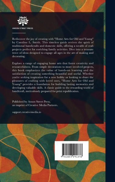 Rediscover the joy of creating with "Home Arts for Old and Young" by Caroline L. Smith. This timeless guide revives the spirit of traditional handicrafts and domestic skills, offering a wealth of craft projects perfect for enriching family activities. Dive into a treasure trove of ideas designed to engage all ages in the art of making and decorating. Explore a range of engaging home arts that foster creativity and resourcefulness. From simple decorations to more involved projects, this book emphasizes the value of hands-on learning and the satisfaction of creating something beautiful and useful. Whether you're seeking inspiration for a new hobby or looking to share the pleasures of crafting with loved ones, "Home Arts for Old and Young" provides a foundation for building lasting memories and developing valuable skills. A classic guide to the rewarding world of handicraft, meticulously prepared for print republication. This work has been selected by scholars as being culturally important, and is part of the knowledge base of civilization as we know it. This work is in the public domain in the United States of America, and possibly other nations. Within the United States, you may freely copy and distribute this work, as no entity (individual or corporate) has a copyright on the body of the work. Scholars believe, and we concur, that this work is important enough to be preserved, reproduced, and made generally available to the public. We appreciate your support of the preservation process, and thank you for being an important part of keeping this knowledge alive and relevant.
