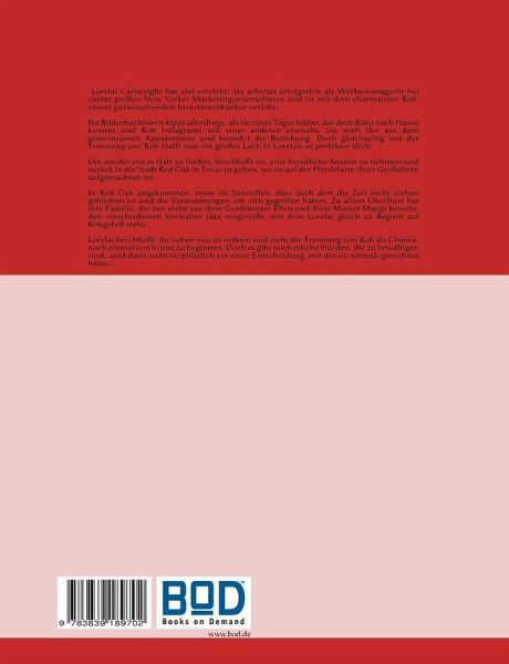 Lorelai Cartwright hat viel erreicht. Sie arbeitet erfolgreich als Werbemanagerin bei einem großen New Yorker Marketingunternehmen und ist mit dem charmanten Rob, einem gutaussehenden Investmentbanker verlobt.Ihr Bilderbuchleben kippt allerdings, als sie eines Tages früher aus dem Büro nach Hause kommt und Rob Inflagranti mit einer anderen erwischt. Um wieder etwas Halt zu finden, beschließt Lorelai, ihr Leben neu zu ordnen und sieht die Trennung von Rob als Chance, noch einmal von Vorne zu beginnen. Sie geht zurück nach Red Oak, Texas, wo sie auf der Pferdefarm ihrer Großeltern aufgewachsen ist. Doch auch dort ist Vieles nicht mehr so, wie in ihrer geliebten Kindheit. Und dann steht sie plötzlich vor einer Entscheidung, mit der sie niemals gerechnet hätte...