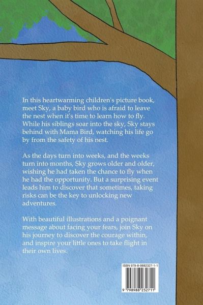 In this heartwarming children's picture book, meet Sky, a baby bird who is afraid to leave the nest when it's time to learn how to fly. While his siblings soar into the sky, Sky stays behind with Mama Bird, watching his life go by from the safety of his nest. As the days turn into weeks, and the weeks turn into months, Sky grows older and older, wishing he had taken the chance to fly when he had the opportunity. But a surprising event leads him to discover that sometimes, taking risks can be the key to unlocking new adventures. Written and illustrated by N. Argentieri, this book has a poignant message about facing your fears. "Home Bird" is a perfect addition to any child's bookshelf. Join Sky on his journey to discover the courage within, and inspire your little ones to take flight in their own lives.